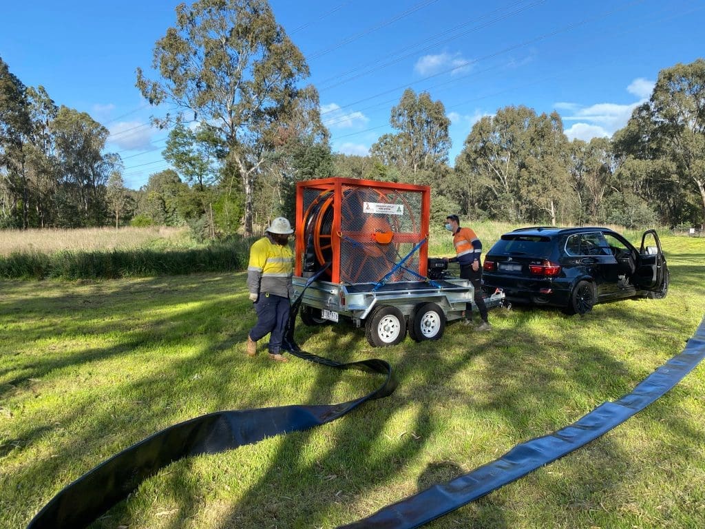 Thys Stryker, Operations Manager of Coates Hire, who undertook the project again in September 2021, was more than pleased at the ease with which the Argyle Trailer-mounted Reel System deployed the hose. Before, it took a whole day to roll out the hose manually, but with the reeling system, it took only 3 hours with much less physical strain. The labour force was delighted! “This ingenious reeling system can quickly and easily deploy up to 200 m of hose in a fraction of the time it would take to do it by hand,” continued Thys, “we are confident this will make the use of layflat hose a lot more desirable for many municipal works.”